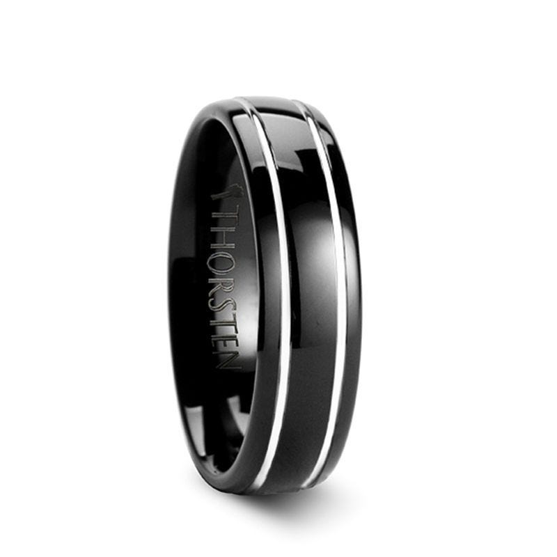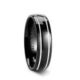 ECLIPSE Domed Black Tungsten Ring with Polished Offset Grooves - 6mm & 8mm