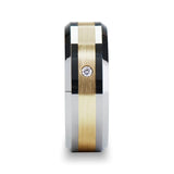 FABIAN 14K Gold Inlaid Beveled Tungsten Ring with Diamond - 8mm