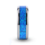 GALAXY Titanium Polished Beveled Edge with Blue Green Opal Inlay - 8mm
