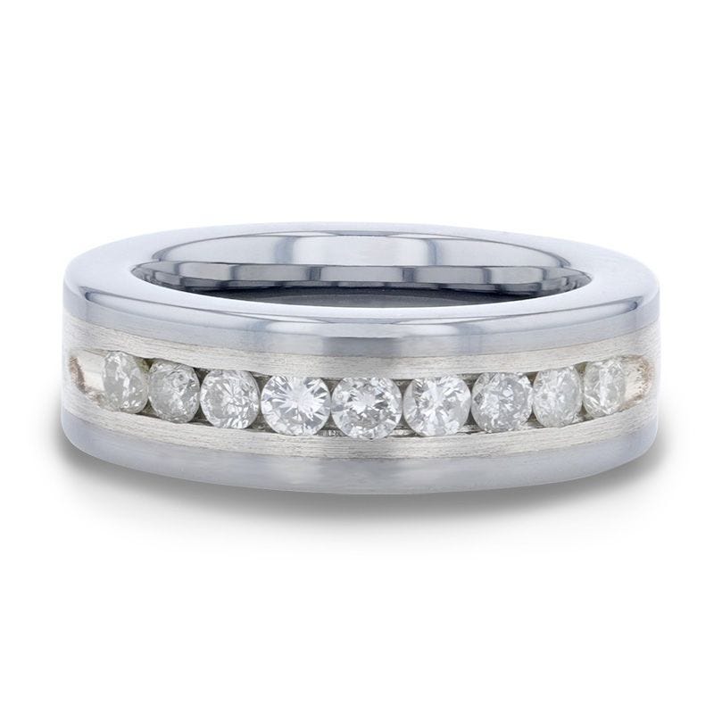 HOLDEN Flat Tungsten Carbide ring with Satin Finished Silver Inlay and 0.9 ctw Channel Set Diamonds by Thorsten - 8mm