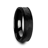 JOINER Hammered Finish Center Black Tungsten Carbide Wedding Band with Dual Offset Grooves and Polished Edges - 6mm or 8mm