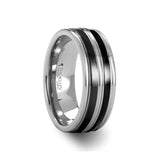 LEVIATHAN Grooved Tungsten Ring With Dual Offset Black Inlays