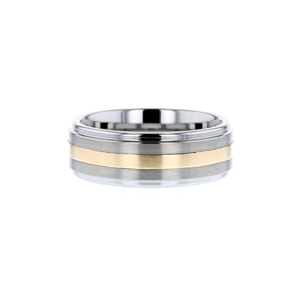 LONDON Gold Inlaid Raised Satin Finish Tungsten Ring - 8 mm
