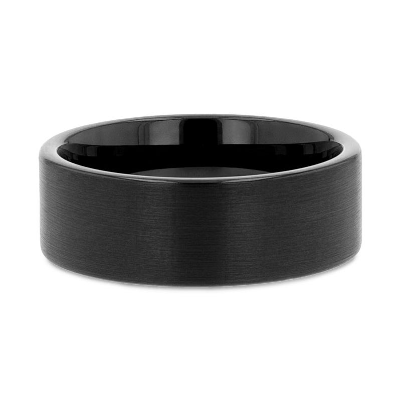 NERO Flat Pipe Cut Black Tungsten Ring with Brushed Finish