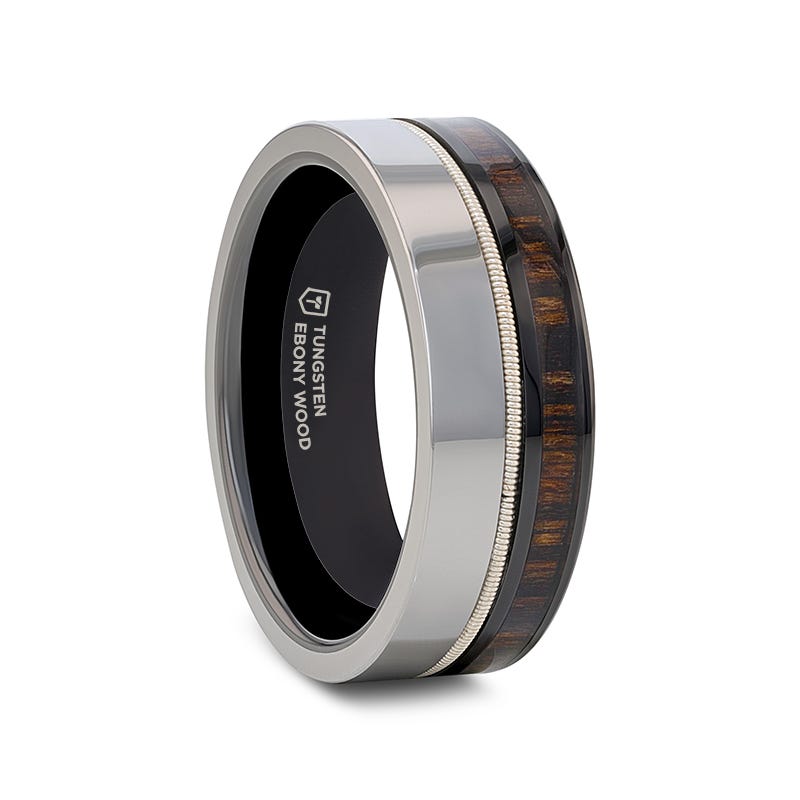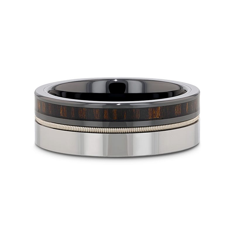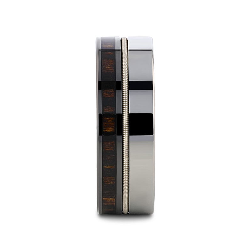 SLATE Tungsten & Black Ceramic Hybrid Ring with Steel Guitar String Ebony Wood and a Black Ceramic Interior - 8mm
