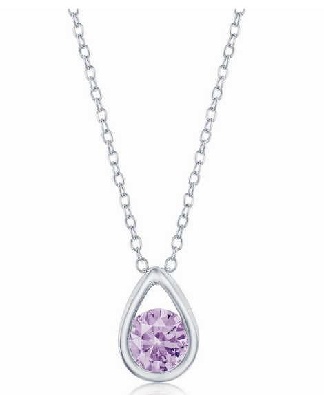 Sterling Silver Pearshaped Necklace w/Round June Birthstone - Created Alexandrite 16 Length + 2 Extender